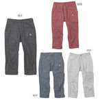 股下のマチ、膝の切替は脚の運動性に配慮。裾のリブ使いは新提案のタックアップ自在。 ●素材:ソフト股下のマチ、膝の切替は脚の運動性に配慮。