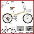 HIATE ハイエイト 折りたたみ自転車 折り畳み自転車 20インチ HI-206 2色 シマノ6段変速 カゴ・カギ・ライト付き 自転車 通販 北海道不可