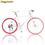 :約1週間 Raychell+ 自転車 R+707HybridStyle ホワイトxレッド 700C 約27インチ アルミフレーム シマノ7段 クロスバイク