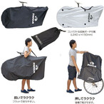 自転車を持ち運ぶ時に便利なケースです。筒状のシートをたたんだ自転車にかぶせるだけの極めてシンプルな自転車を持ち運ぶ時に便利なケースです。