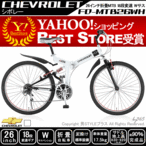 CHEVROLET シボレー マウンテンバイク ハイテンWサス 折りたたみ mimugo FD-MTB26WH シマノ18段ギア付 ホワイト 代引不可