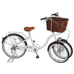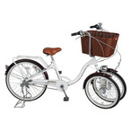 バスケット付三輪自転車ホワイト/Bambina/自転車/大きなバスケット付きで、たくさんお買い物しても容量たっぷりで安心!<サイズ>約1700×600×1120mm※自転車購入時や友人等から譲り受け