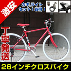着後レビューで空気入れプレゼント♪  自転車 26インチクロスバイク TOPONE 超軽量クロスバイク カギ・ライトセットでお得! T-MCR266-13