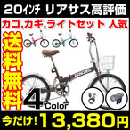 軽量折りたたみ自転車 20インチ 6段変速 カゴ ライト カギ付 パンゲア ポタリング