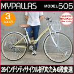 シティサイクル折りたたみ自転車 26インチ 6段変速 カゴ・ライト・カギ付 MyPallas M-505
