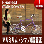 ミニベロ ロード 自転車 20インチ シマノ6段変速 アルミリム F-select F-201