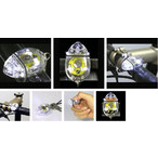 商品名 Bikeguy FX-5 サイズ / 45×28×16mm 重量 / 15g(バッテリー含む) 電池 / リチウムボタン電池CR2032×2個(モニター電池付属) 発光色 / 白色 連続点灯時間(電池寿命) / 循環点滅?216時間・一斉点滅? 96時間・連続点灯? 48時間 取付可能径 / 25.4-32.0mm 原産国 / 中国 別売品 / ・替電池CR2032:1個180円(税込189円) ※2個必要 ・ラバーストラップ:100円(税込105円) 商品特長 ★わずか4.5cmのボディに砲弾型白色LEDを全方向、合計5個も装備。 ★ラバーバンドで簡単着脱(USA特許取得) ★3モード:循環点滅 / 一斉点滅 / 連続点灯 ★電池交換可能・入手しやすいリチウム電池(CR-2032)2個使用 ★環境配慮設計(RoHS指令準拠) ★防雨構造(特許出願中) ※本商品はフロントライトの補助灯としてご使用ください